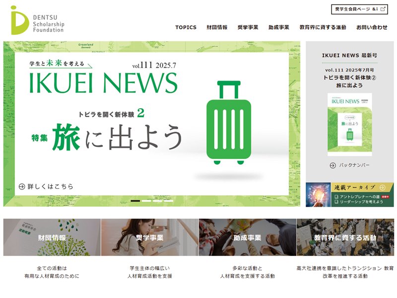 『よりよい未来を創る志を共にし、多様な領域において学生が主体的に挑戦し、次世代リーダーへと成長していく活動』を電通育英会は支援します。