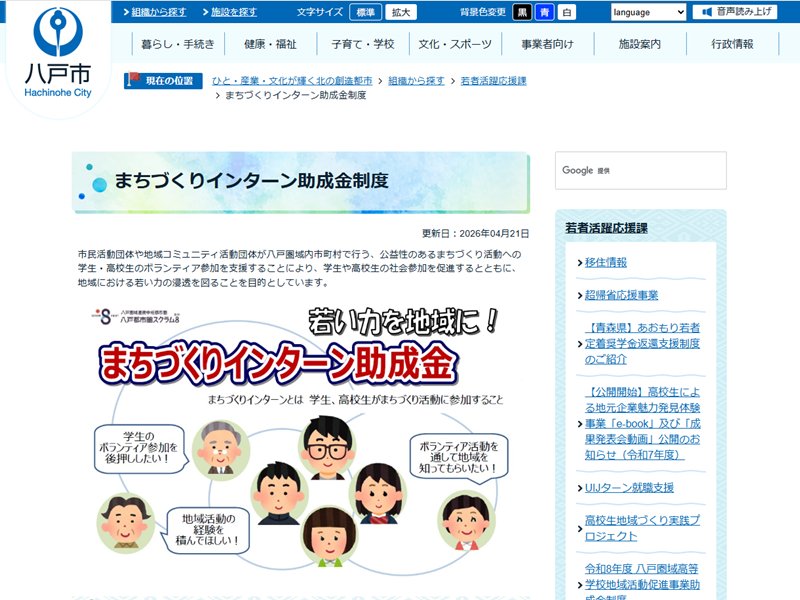 まちづくりインターン助成金制度|八戸市