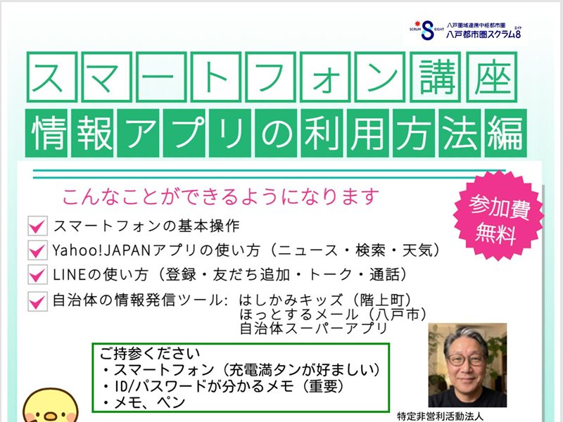 - 自治体の情報発信ツール『はしかみキッズ(階上町)』『ほっとするメール(八戸市)』『自治体スーパーアプリ』